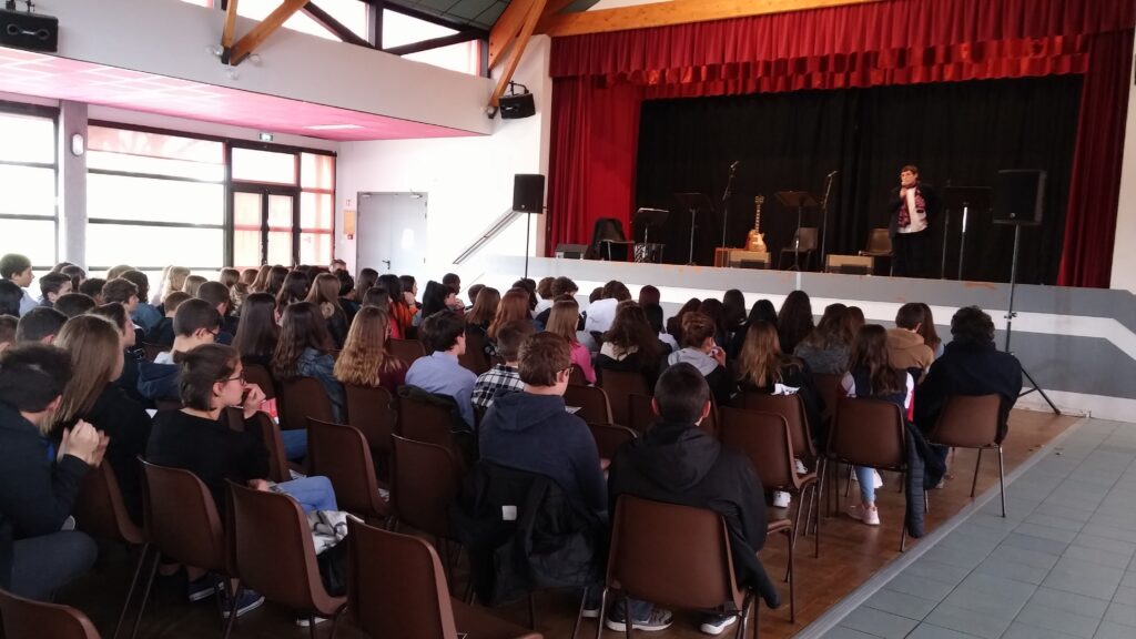 S’en suivront donc visites régulières évidemment des expositions du Musée-Mémorial des enfants du Vel d’Hiv d’Orléans, de l’ancienne gare de Phitiviers, de nouvelles rencontres aussi comme avec Jean-Claude Grumberg, auteur de la pièce L’Atelier qui aborde la difficile question du retour des rescapés des camps, une pièce interprétée par la troupe « Les Carnutes » devant mes élèves à Bouzy-la-Forêt (2016), ou autres manifestations auxquelles Hélène Mouchard-Zay ne refusait jamais de participer, comme ici en 2019 où elle présentait aux élèves le spectacle Quand la chanson se souvient de la Shoah.