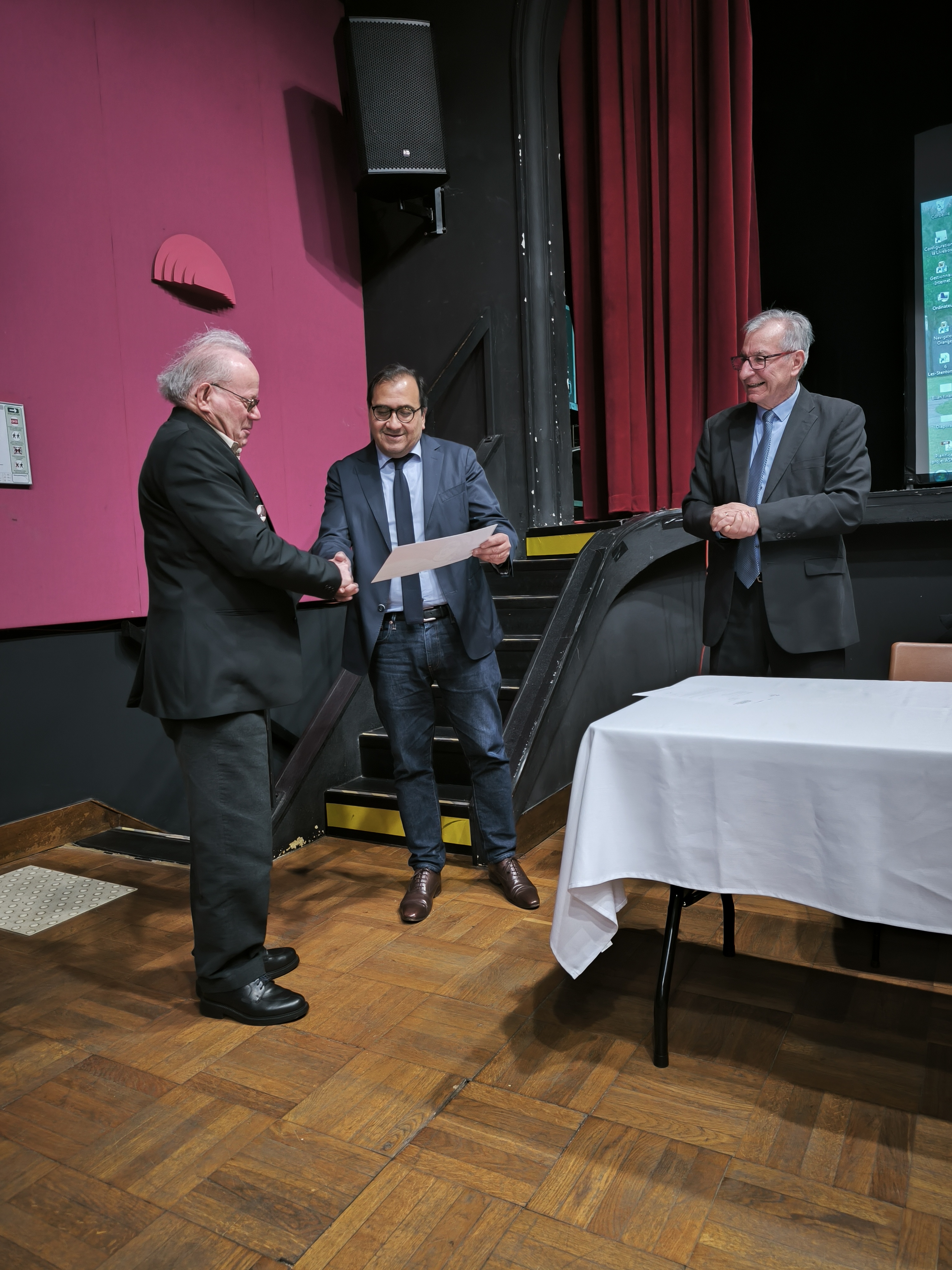 Le président de l’AFAAM Denis Godeau célèbre Gabriel Huet, salle du Martroi à Lorris (Droits réservés, AFAAM, 24 juin 2023)